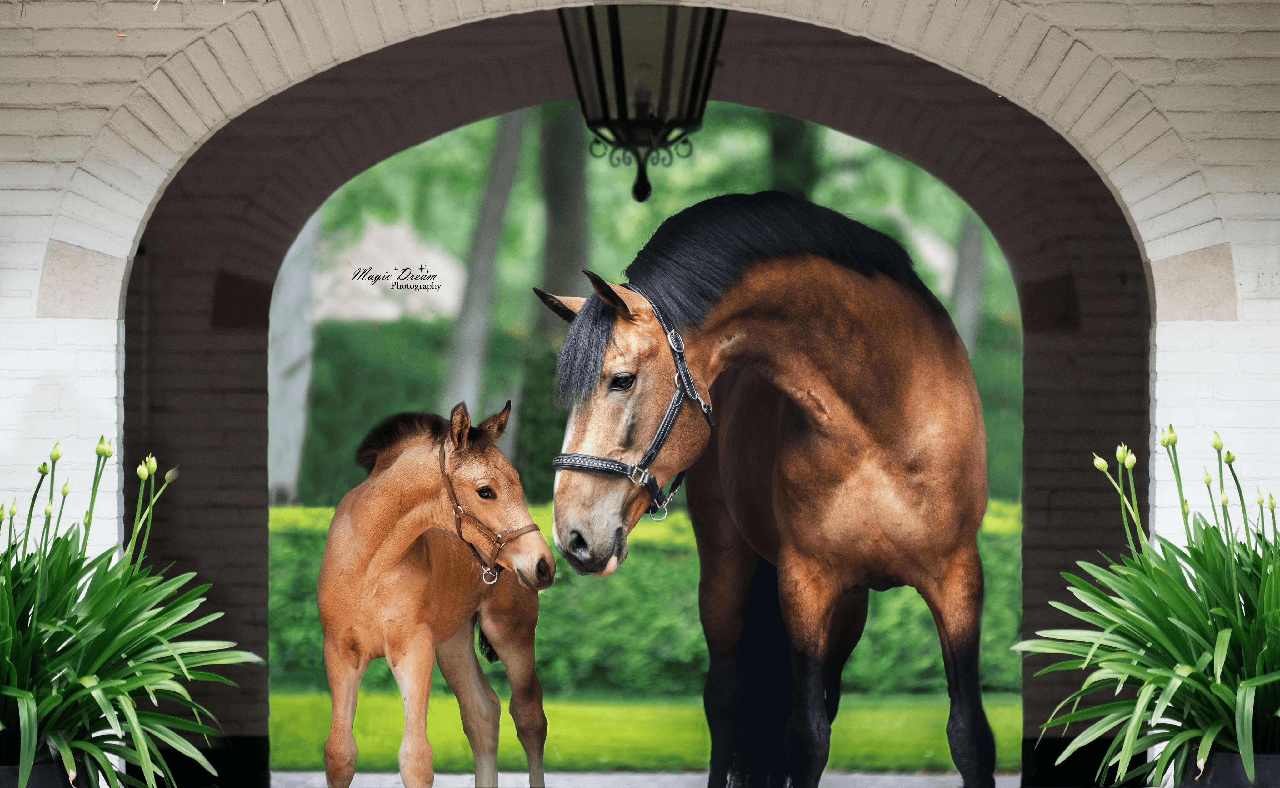 We believe that behavior is a product of both genetics and environment. We therefor choose our breeding stock meticulously, using only top warmblood stallions that scored a 9,5 or 10 for character on their stalliontest. We match them with high quality Iberian mares that are approved by both the ANCCE/APSL and the Oldenburger Verband. In the nurturing proces we expose our young horses intensely to diverse experiences. On a daily basis we teach them to be attentive to human commands, stand still, wait for you, being transported, engage with the farrier, walk on a lead and thus master fundamental behaviours essential to function in our human world.