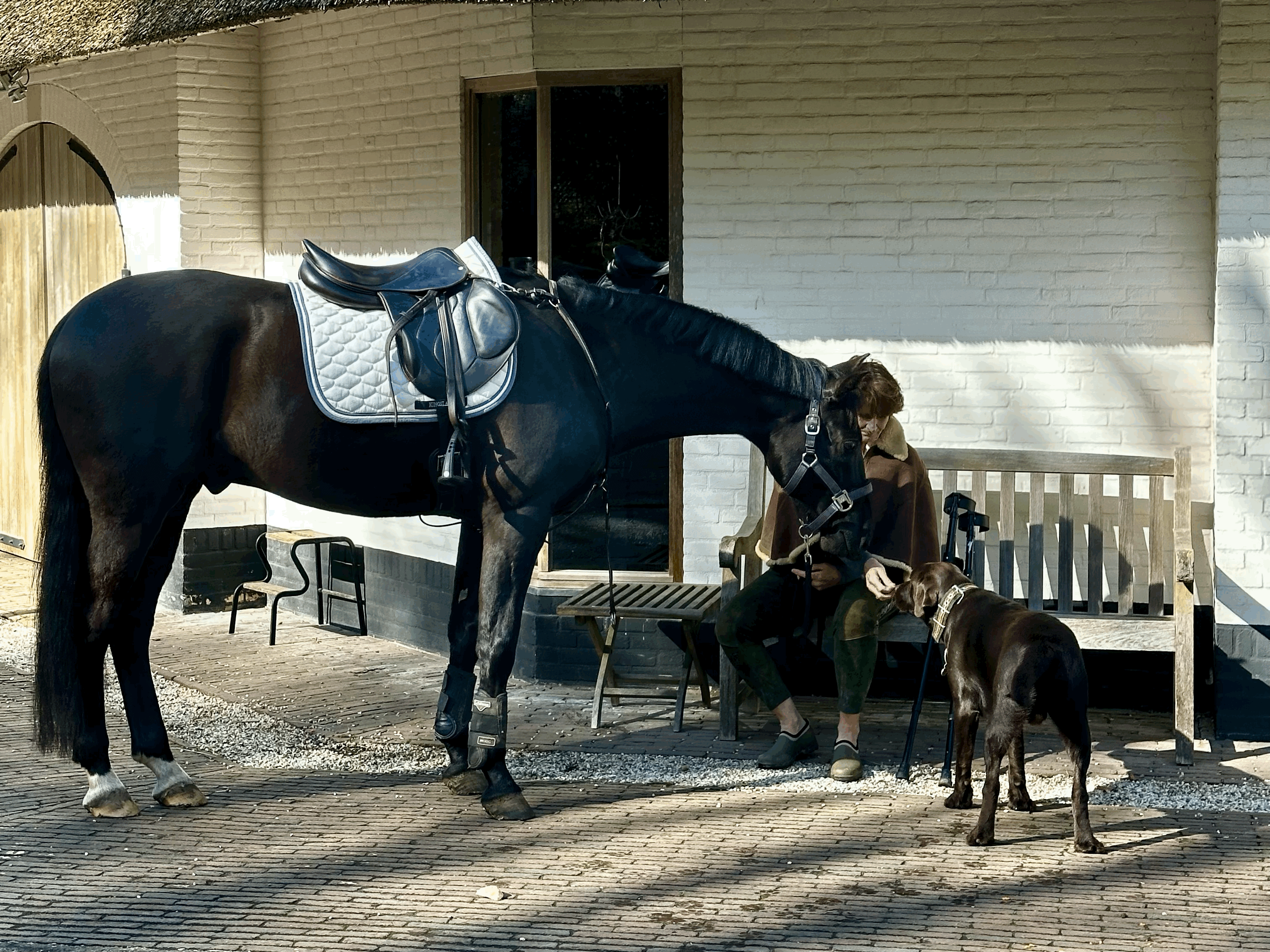 Odazzy is a 7 year old crossbred by the KWPN dressage stallion Detorri. Odazzi is a black gem. He has the most beautiful head and body, extremely elegant. Not too big though, he is 1.62. He is an exctremely cuddily cool horse, very trustworthy, in for everything. He came to ourt stable in the spring of 2026 and we are now riding him in the woods, getting to know him. We intend to spend the summer riding him X-country, showjumping and dressage, as he is a perfect horse for us to test what full grown crossbreds can do.