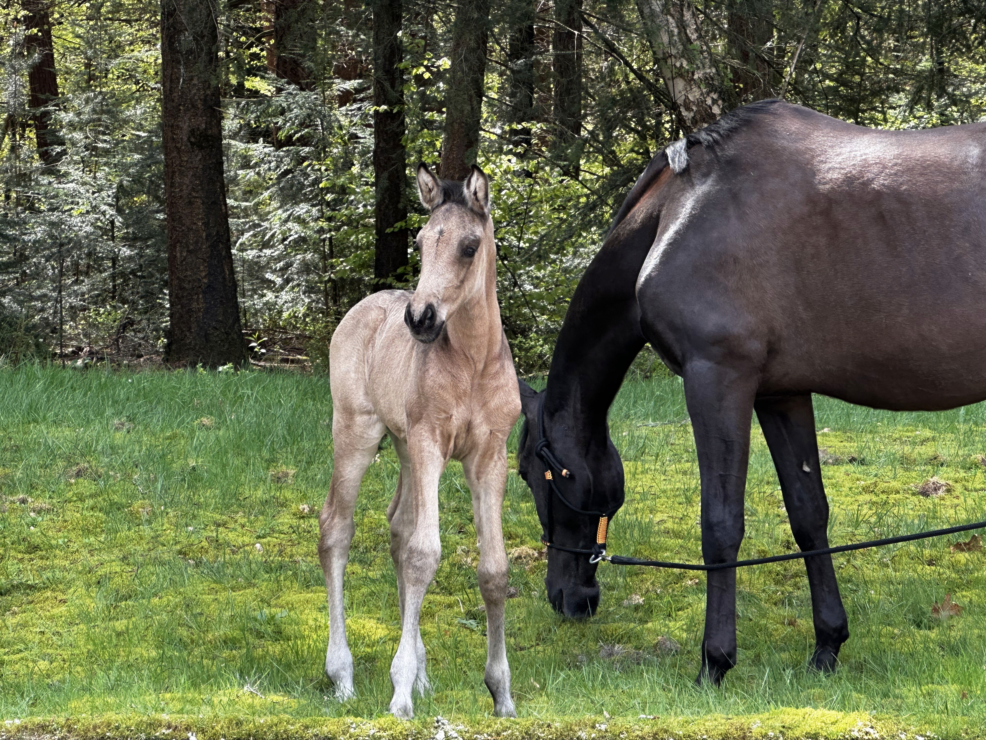 Quartz is a sensationally dark colored, immensly friendly, buckskin filly out of our bomproof PRE mare, Nacadara and the Oldenburger approved warmblood stallion Quaside. Quartz is really big and will defenitely be 1.70 when she is full grown, as is her mother. She is remarkably friendly to people, as most of Quaside's off spring are. She loves live, is quick on her feet, but always focused on you if you ask her something or to be responsive.