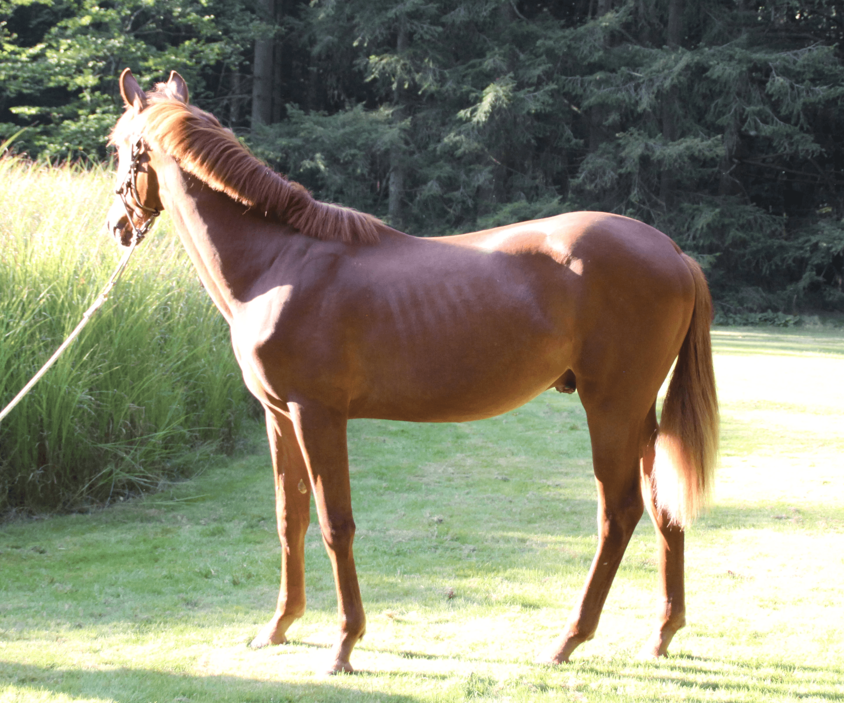 Troy is a sensational chesnut colt. He oozes when he moves, his body has been beautiful from the first day onwards. At 1 year old he is a very proud but sweet yearling. Spring 2024 he will go into the fields for 2 years growing up amongst other horses. Troy is a brother of Project X , they share the same PRE mother Adefa. Troy's father Escanto (by Escamillio) won the Bundeschampionat in 2023. Troy will be sensational !